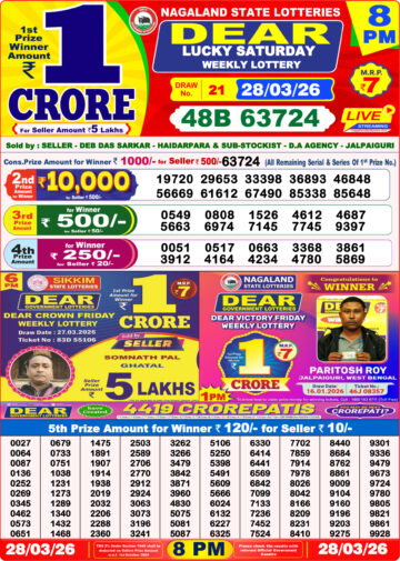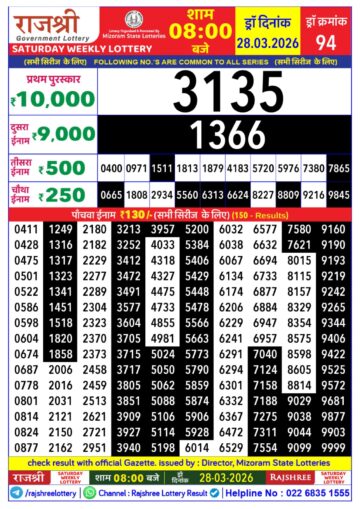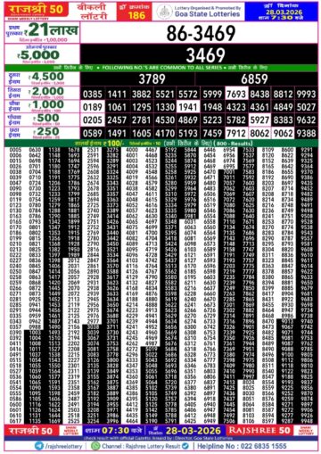 Rajshree 50 Lottery 7:30PM Result 28 03 26