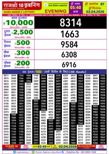 Rajshree 10 Evening 5:40PM Result 02 04 26