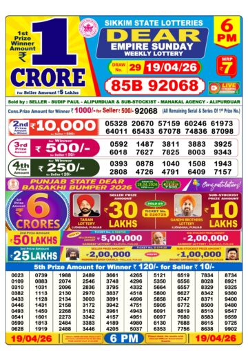 All India Lottery Result For Nagaland Sikkim Goa Kerala Punjab Mizoram State Lotteries