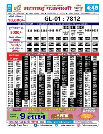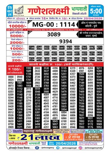Maharashtra Ganesh Laxmi Lottery Result 20 04 26