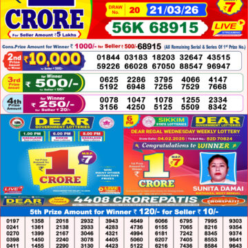 Today the result for Dear Magic Sunday Weekly Lottery Result 8:00 PM 22 03 2026 will be posted here at 8:00 PM.