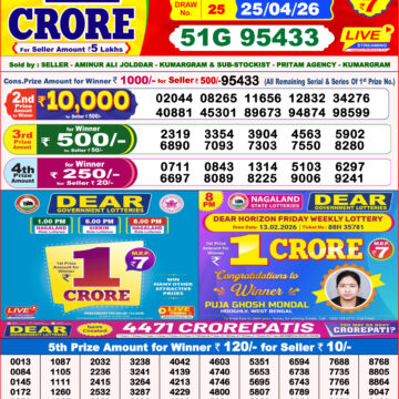 Today's result for Dear Magic Sunday Weekly Lottery Result 8:00 PM 26 04 2026 is scheduled to be announced at 8:00 PM.