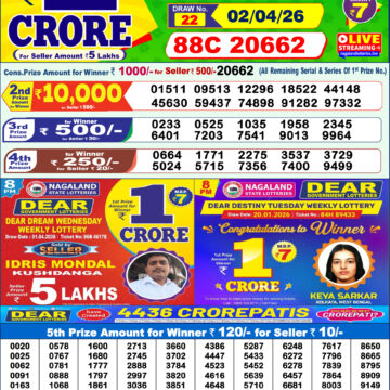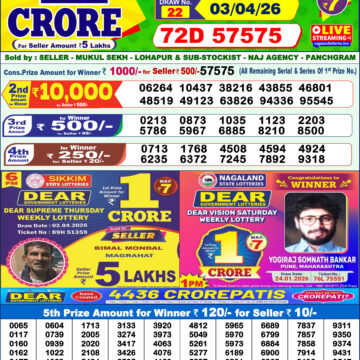 Today the result for Dear Vision Saturday Weekly Lottery Result 1:00 PM 04 04 2026 will be posted here at 1:00 PM.