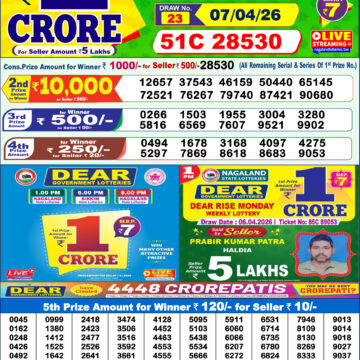 Today the result for Dear Victory Friday Weekly Lottery Result 1:00 PM 10 04 2026 will be posted here at 1:00 PM.