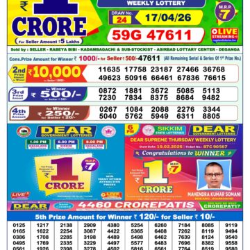 Today the result for Dear Vision Saturday Weekly Lottery Result 1:00 PM 18 04 2026 will be posted here at 1:00 PM.