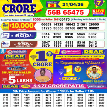 The live draw for Dear Star Thursday Weekly Lottery Result 1:00 PM 23 04 2026 is currently underway. Stand by for the official numbers.