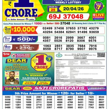 The live draw for Dear Victory Friday Weekly Lottery Result 1:00 PM 24 04 2026 is currently underway. Stand by for the official numbers.