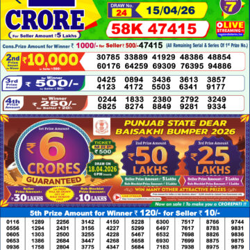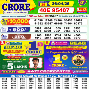 The live draw for Dear Rise Monday Weekly Lottery Result 1:00 PM 27 04 2026 is currently underway. Stand by for the official numbers.