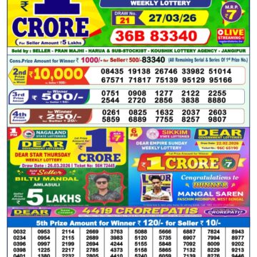 Today the result for Dear Vision Saturday Weekly Lottery Result 1:00 PM 28 03 2026 will be posted here at 1:00 PM.