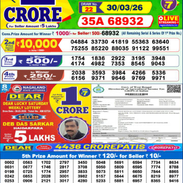 Today the result for Dear Shine Tuesday Weekly Lottery Result 1:00 PM 31 03 2026 will be posted here at 1:00 PM.