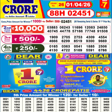 Today the result for Dear Supreme Thursday Weekly Lottery Result 6:00 PM 02 04 2026 will be posted here at 6:00 PM.