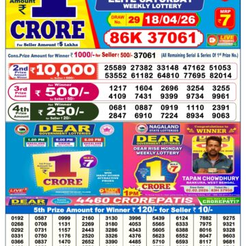 Today the result for Dear Empire Sunday Weekly Lottery Result 6:00 PM 19 04 2026 will be posted here at 6:00 PM.