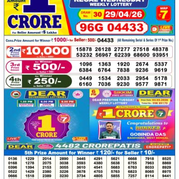 Today's result for Dear Supreme Thursday Weekly Lottery Result 6:00 PM 30 04 2026 is scheduled to be announced at 6:00 PM.