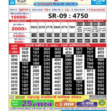 Maharashtra Gajlaxmi Lottery Result 19 04 26 Result Editorial Team April 19, 2026 Posted in Maharashtra Lottery Result Other Results in This Time 0 17 Maharashtra Ganesh Laxmi Lottery Result 09 04 26 0 11 Maharashtra Sahyadri Lottery Result 14 04 26 0 15 Maharashtra Sahyadri Lottery Result 07 04 26 0 10 Maharashtra Sahyadri Lottery Result 17 04 26 0 14 Maharashtra Sahyadri Lottery Result 10 04 26 0 38 Maharashtra Ganesh Laxmi Lottery Result 21 03 26 0 29 Maharashtra Gajlaxmi Lottery Result 27 03 26 Author: Result Editorial Team Website