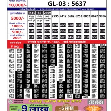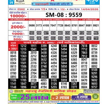 Maharashtra Ganesh Laxmi Lottery Result 15 04 26 Result Editorial Team April 15, 2026 Posted in Maharashtra Lottery Result Other Results in This Time 0 13 Maharashtra Ganesh Laxmi Lottery Result 08 04 26 0 26 Maharashtra Sahyadri Lottery Result 26 03 26 0 13 Maharashtra Gajlaxmi Lottery Result 05 04 26 0 20 Maharashtra Sahyadri Lottery Result 01 04 26 0 3 Maharashtra Gajlaxmi Lottery Result 14 04 26 0 21 Maharashtra Lottery Result Today 4PM 31 03 26 0 5 Maharashtra Sahyadri Lottery Result 14 04 26 Author: Result Editorial Team Website