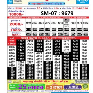 Maharashtra Ganesh Laxmi Lottery Result 22 04 26 Result Editorial Team April 22, 2026 Posted in Maharashtra Lottery Result Other Results in This Time 0 33 Maharashtra Ganesh Laxmi Lottery Result 24 03 26 0 25 Maharashtra Lottery Result Today 4PM 30 03 26 0 18 Maharashtra Gajlaxmi Lottery Result 05 04 26 0 21 Maharashtra Lottery Result Today 4PM 08 04 26 0 12 Maharashtra Ganesh Laxmi Lottery Result 16 04 26 0 32 Maharashtra Lottery Result Today 4PM 23 03 26 0 25 Maharashtra Lottery Result Today 4PM 04 04 26 Author: Result Editorial Team Website